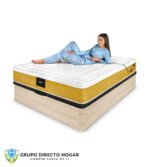 El colchón Avalon Cashmere con Masaje Individual de Grupo Directo Hogar ofrece una experiencia de descanso premium única, gracias a su avanzada tecnología híbrida antidolores y el dispositivo Ultra Confort Plus 6.0 que proporciona una firmeza extra. Esta tecnología híbrida combina viscoelástica de alta densidad con los últimos materiales para aliviar dolores musculares y articulares, garantizando un soporte perfecto para todo el cuerpo. El dispositivo Ultra Confort Plus 6.0 refuerza esta firmeza, haciéndolo ideal para personas que requieren un soporte adicional o que prefieren dormir boca arriba. Adicionalmente, el colchón está equipado con un tejido vector terapéutico que desprende un aroma a vainilla dulce de macadamia, creando un ambiente de descanso relajante y placentero. La viscoelástica Súper Confort Plus de 6 cm y 70 kg de densidad se adapta a la forma del cuerpo, distribuyendo el peso de manera uniforme y reduciendo los puntos de presión para un confort y alivio del dolor inigualables.